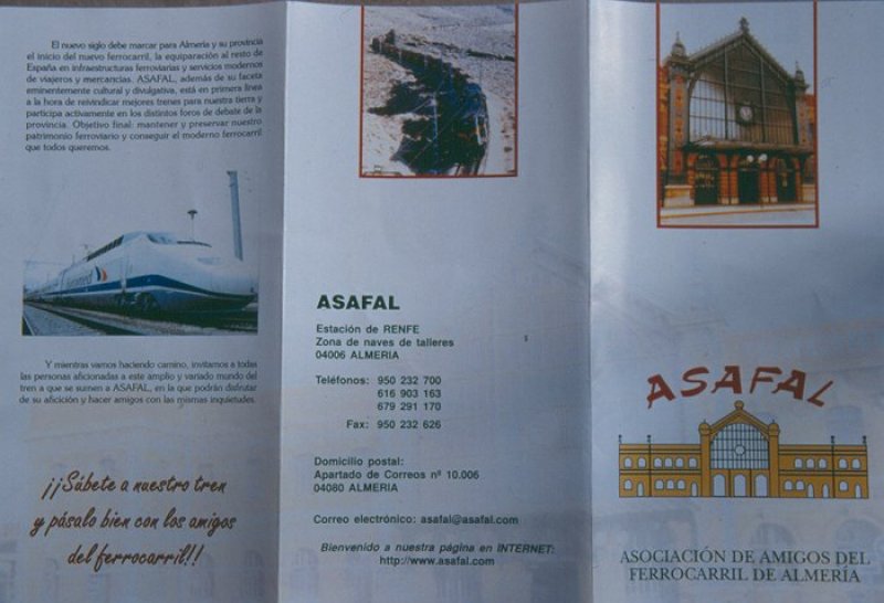 La Asociación de Amigos del Ferrocarril de Almería (ASAFAL) y el Instituto de Estudios Almerienses organizan una exposición, de la que este catálogo pretende dar una visión general, en la que se recoge el pasado, presente y futuro de un ferrocarril con ciertos rasgos atípicos, entre los que destacan su situación periférica y la impronta minera de su explotación. No obstante, y a pesar de las dificultades y deficiencias ha llegado a tan feliz aniversario, para afrontar la llegada del nuevo milenio, necesariamente, con aires de renovación y poder ser capaz de ofrecer a la sociedad almeriense unos servicios que durante décadas quedaron lejos de las necesidades de su población.