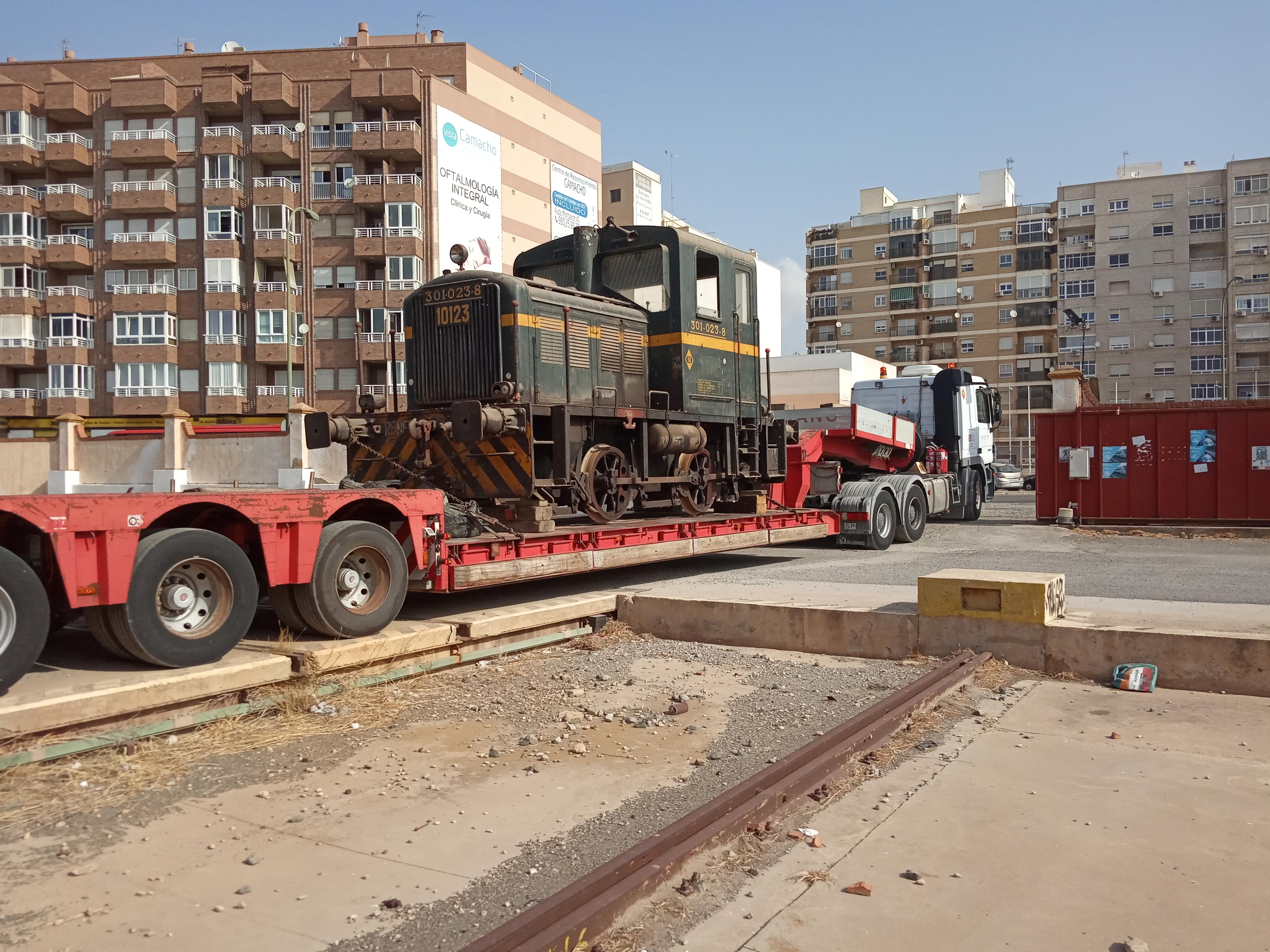 La mañana del día 4 de julio de 2019 no ha sido agradable para la Asociación de Amigos del Ferrocarril de Almería. En un transporte especial partía definitivamente del recinto ferroviario de la capital la locomotora de maniobras 10123, conocida popularmente como “memé” o “pegasín”, que estuvo prestando servicio en los talleres almerienses hasta 1996 remolcando los vagones que eran reparados en estas instalaciones. Fabricado en 1962 por la Maquinista Terrestre y Marítima (MTM) y motorizado por la Empresa Nacional de Autocamiones (Enasa), fue el resultado de la tecnología española del momento que dio excelentes resultados a lo largo de tres décadas. Se trata pues de una pieza histórica que, desgraciadamente, no podremos tener en nuestra tierra.