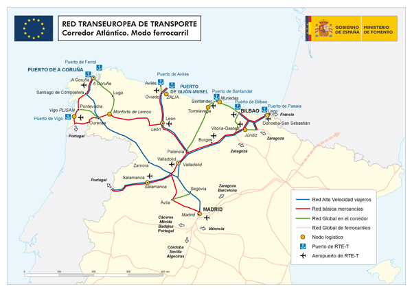 El Corredor Atlántico se constituye en un corredor multimodal que, desde la frontera francesa, conectará con los principales nodos del arco atlántico y con Portugal.