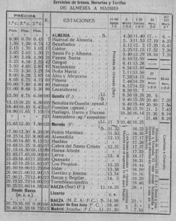 La anhelada y azarosa construcción del ferrocarril de Linares a Almería, tras largos decenios de espera expectante, se realizó entre 1891 y 1899, fechas en las que se llevaron a cabo los trabajos de puesta en servicio en la línea principal de Baeza Empalme (actual Estación Linares Baeza) hasta Almería. En la lejana fecha de 1873 la Diputación Provincial había asumido los trabajos de estudio del futuro trazado del ferrocarril, que se había concebido como una línea secundaria que estaría destinada al transporte del mineral de plomo de la rica cuenca linarense y, aprovechando su paso por toda la cuenca del río Andarax, serviría para potenciar la floreciente producción de la “uva de embarque” acercándola, con el novedoso medio de transporte, al puerto de Almería. Las severas condiciones de la orografía del sureste, el escaso potencial demográfico de la zona y las serias dudas existentes en los círculos inversores sobre la rentabilidad del proyecto, hicieron que éste permaneciera largos años pendiente de su realización. En la década final del siglo XIX la creciente demanda, por parte de los altos hornos ingleses, de mineral de hierro procedente de los numerosos yacimientos del Sureste crearía un nuevo aliciente que permitiría, por un lado, la tan anhelada construcción del ferrocarril que “incorporaría a Almería al concierto de los países civilizados”, pero, por otro provocaría notables cambios en el diseño de la línea, obviando el paso por las ricas comarcas de la Loma de Úbeda, la Hoya de Baza y el curso del Alto y Medio Andarax. El transporte de mineral de hierro desde los vastos yacimientos del Marquesado del Zenete sería el principal, y casi único, argumento económico de la línea hasta la reciente finalización de la actividad minera en octubre de 1996.