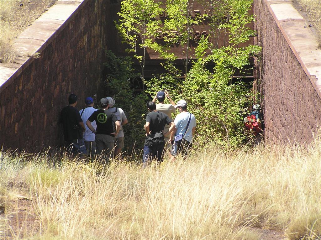 Desafiando el sol de agosto, el día 15 de este mes se abrieron para ASAFAL las puertas del poblado minero de Minas del Marquesado. El actual propietario de los terrenos, en donde hace once años se extraía mineral de hierro con destino al embarcadero de Almería, permitió a la asociación recorrer las instalaciones de la antigua Compañía Andaluza de Minas y la contigua de Alquife Mines. Acompañados por el encargado, Sr. Aguilera, antiguo minero, el grupo pudo visitar la casa-gerencia, el grupo de viviendas del poblado y acercarse a la cantera, un inmenso agujero de más de 300 m. de profundidad y con un diámetro de 2 km., en su parte más ancha, hoy inundado de agua una vez cesó la actividad y el bombeo dejó de funcionar. El recorrido continuó por el parque de minerales y las vías de carga de los trenes, quedando muy sorprendidos del grado de deterioro sufrido por el paso del tiempo.