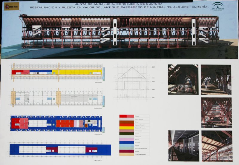 Ramón de Torres, arquitecto y autor del proyecto de rehabilitación, junto con representantes de la empresa que está ejecutando la obra, explicó ampliamente las distintas fases de los trabajos que se llevan a cabo. En esta primera, que durará 14 meses, se procederá a la limpieza, restauración y consolidación de los elementos básicos de la estructura, dejando preparados los espacios previstos para acometer la segunda fase, que se prolongará durante otros 26 meses. Exteriormente, el viejo cargadero quedará tal y como es, pero totalmente rejuvenecido, mientras que en su interior habrá una primera planta que tendrá un pasillo exterior para que el visitante pueda recorrer todo el perímetro, pudiendo ver el mar a través de unos huecos interiores libres. Desde aquí, dos escaleras centrales y ascensores permitirán subir a las plantas superiores, donde irán las dependencias administrativas, una tienda, una sala para exposiciones y una cafetería en dos niveles, ésta en la parte final del embarcadero. También está prevista una sala donde habrá una exposición sobre la historia del Cable. Por último, queda la parte del haz de vías que, en principio sería un mirador y cabe la posibilidad de instalar un pequeño tren que transporte a los visitantes y que recorra toda la longitud del cargadero, desde el propio arranque, en las proximidades de la estación, hasta las toperas.