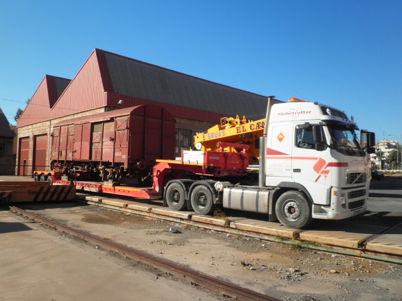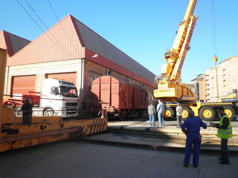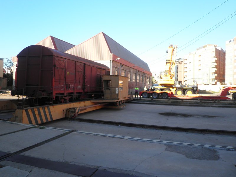 El vagón J2 que ASAFAL tenía estacionado en los talleres de la estación de Almería ha sido trasladado hasta la localidad de Doña María. El día 7 de noviembre se realizaron las tareas de carga a un camión góndola para llevarlo por carretera hasta el lugar definitivo de ubicación.