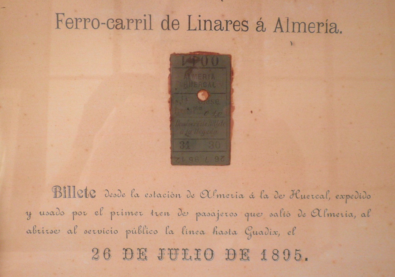 No sabemos qué fue de aquella primera moneda que entró en la caja de la estación de Guadix, pero sí hemos podido localizar un primer billete que se emitió y usó ese día en el primer tren regular. Desconocemos la identidad de quién lo utilizó para realizar el trayecto entre Almería y Huércal, pero al menos se ha conservado un trozo de historia de aquel día en el que por fin se ponía remedio al secular aislamiento de la provincia almeriense.