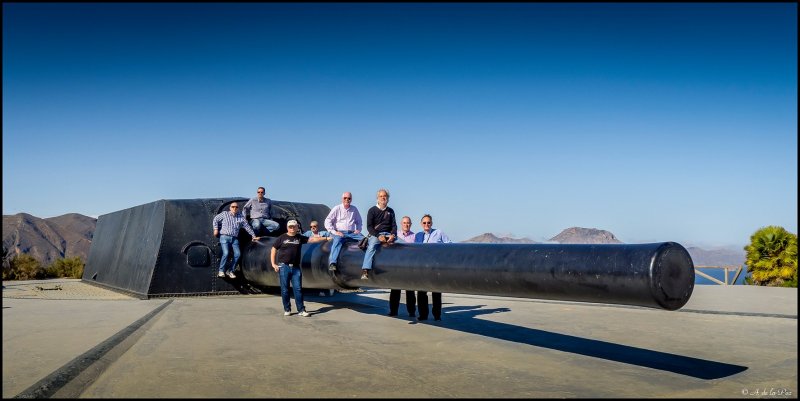 De retorno a Almería, no podíamos dejar de visitar las baterías costeras del Cabo Tiñoso y sus espectaculares vistas de la bahía de Cartagena y del Golfo de Mazarrón. Las dimensiones de estos dos cañones son impresionantes, unos diez metros el tubo, capaces de disparar proyectiles de 1 tonelada de peso hasta 35 km. de distancia. Todo el entorno es un conjunto de fortificaciones artilladas con distinto armamento, fruto del plan de defensa de Cartagena elaborado en los tiempos de la Dictadura de Primo de Rivera y hoy declarado Bien de Interés Cultural. Muy recomendable, a pesar de tener que ascender por una sinuosa y estrecha carretera de montaña.